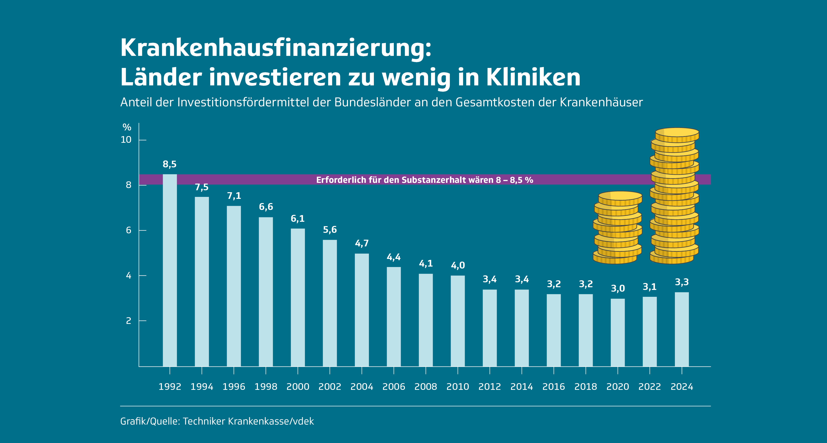 Hier finden Sie unter anderem Grafiken zur Klinikversorgung sowie zur Krankenhausfinanzierung.