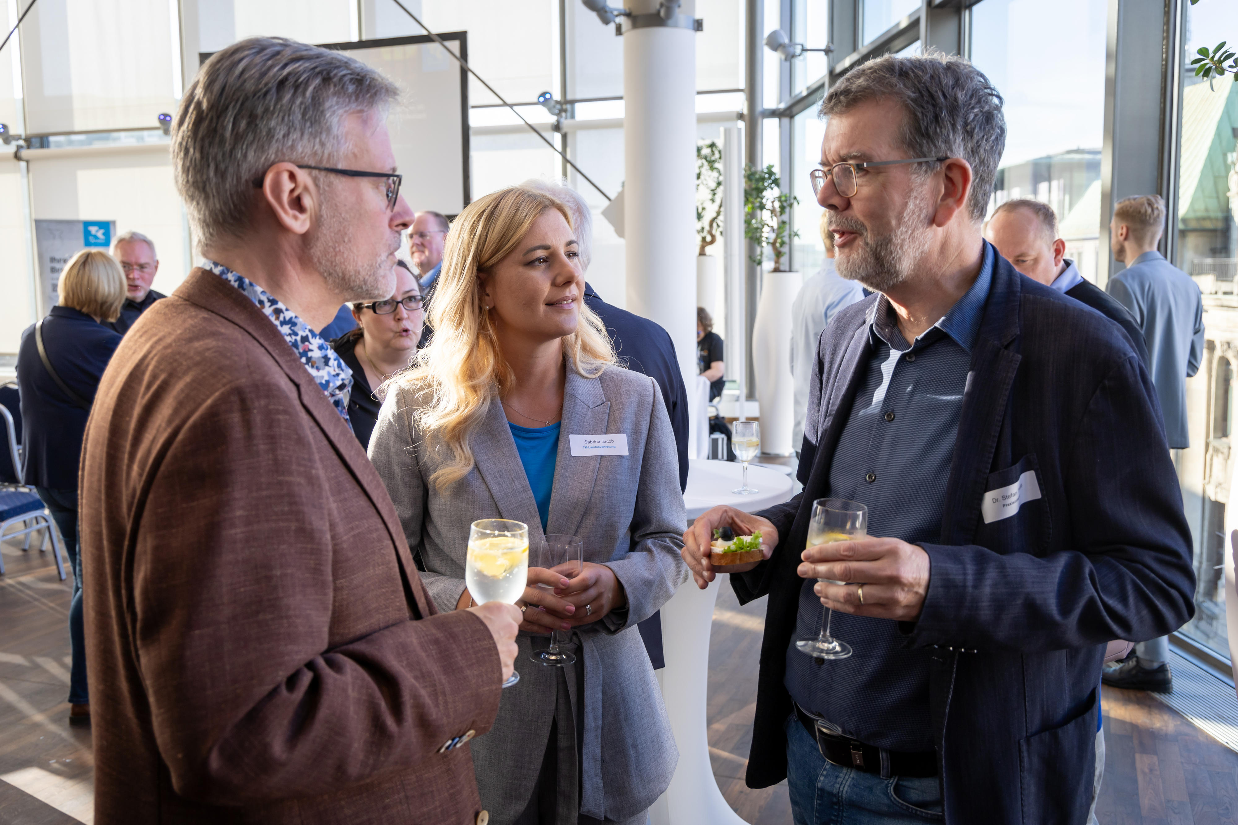 Sabrina Jacob (TK) begrüßt Torsten Barenborg (vdek) und Dr. Stefan Trapp